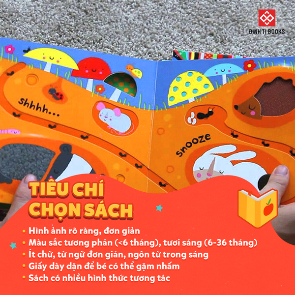 Với những bạn nhỏ trong độ tuổi này bố mẹ hãy chọn cho bé những cuốn sách dày dặn để bé thỏa sức gặm nhấm, nên ưu tiên những sách có thể tương tác với trẻ thông qua trò chơi xúc giác, âm thanh...